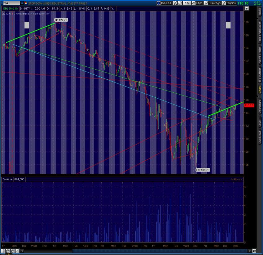 At 12:29PM EST MDPP issued a DEV MDPP PRECISION PIVOT ALERT indicating a significant potential trend reversal challenge to the recovery uptrend from the earlier AUGUST lows is now in EFFECT. LONG Position covering at 114.25 to 115 on the DIA equivalency basis from the 106 lows earlier in August is now SUGGESTED. This pivot was also preceeded today by the obtainment of a KEY MDPP QEV price level INTERSECT and fullfilment.